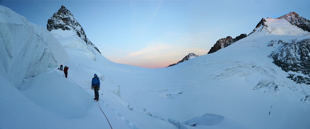 im Morgenlicht vor Crast' Agüzza, Fuorcla Crast' Agüzza und Piz Bernina