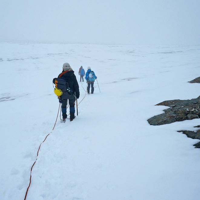 im Nebel über den oberen Scerscen-Gletscher