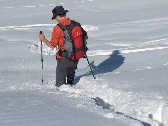 durch den Tiefschnee hinab