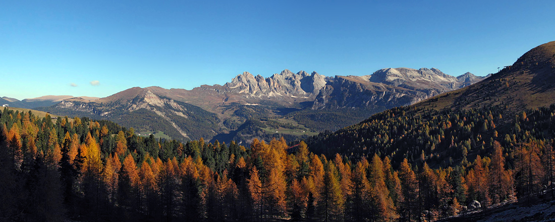 Blick zur Geissler Gruppe und Puez Gruppe mit Col de la Pieres u.a.