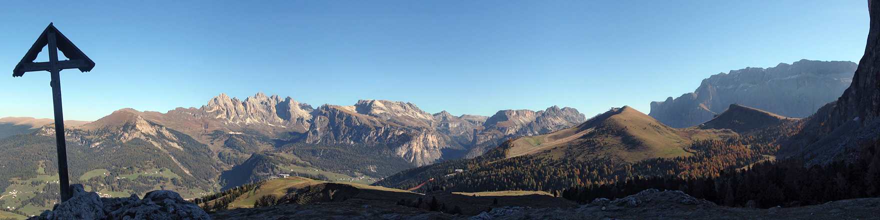 Blick vom Piz Ciaulonch auf Geissler Gruppe, Puez Gruppe, Langental, Sella Massiv