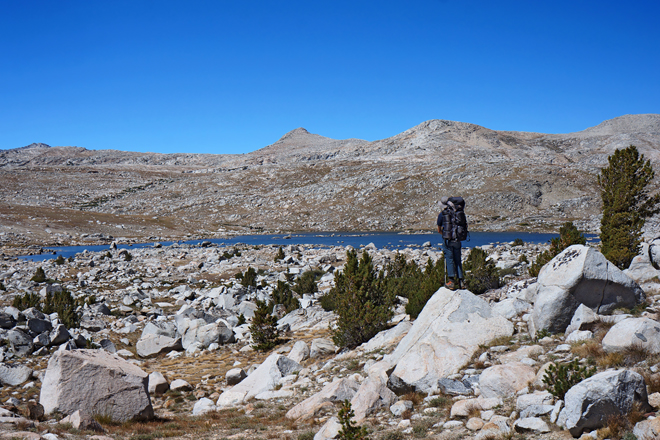 Auf der Suche nach einem guten Zeltplatz am Lower Desolation Lake
