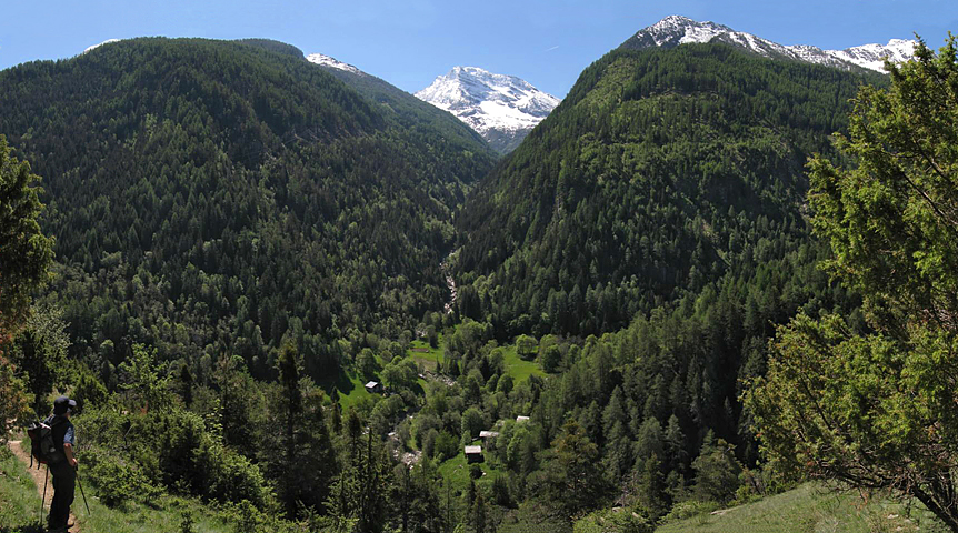 Blick auf Grund, das Tafernatal und das Mäderhorn (?)