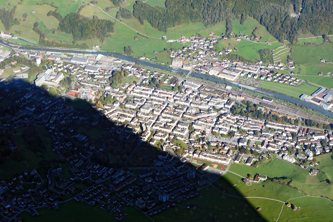 Bergschatten tief unten in Glarus