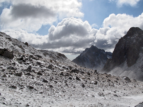 Wolken, Schnee und Wind