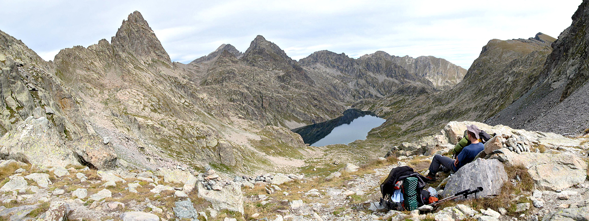 Blick von der Baisse de Valmasque (2549m) auf den Tete du Basto (2794m) und den Lac de Basto (2341m)