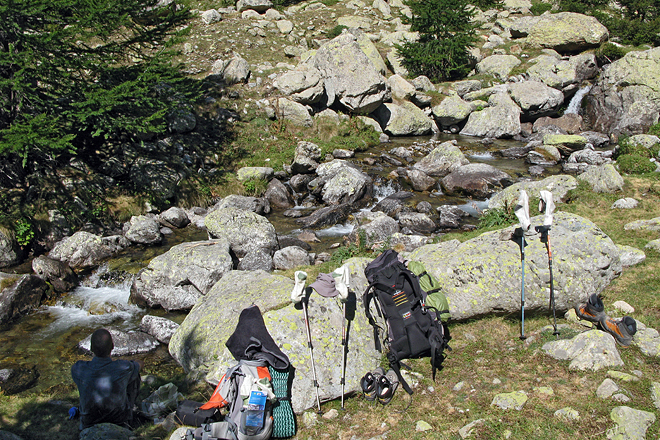 Pause am sprudelnden Bergbach oberhalb von La Madone de Fenestre