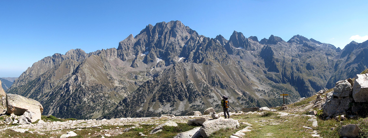 Blick von den Laghi di Fremamorta auf das Argentera Massiv (3297m), Cima die Nasta (3108m), Il Baus (3067m), Cima di Brocan (3054m) etc.
